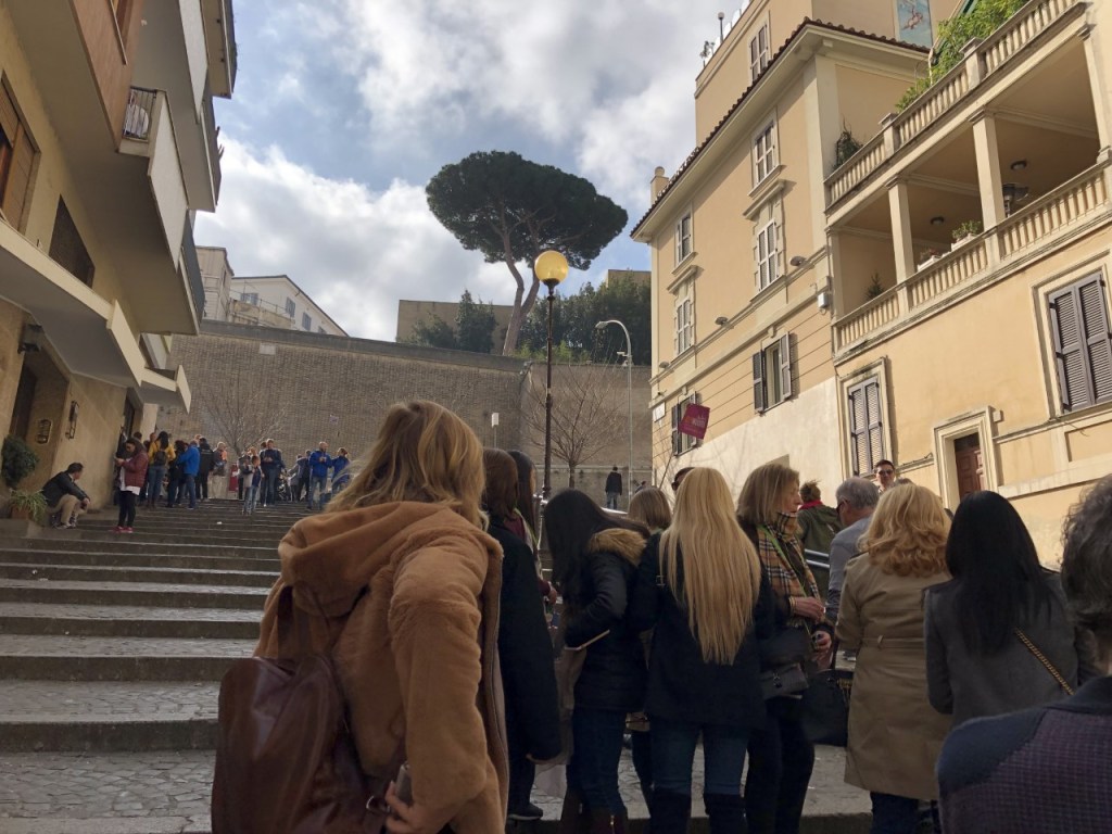 A couple hours before our Vatican Tour was to begin, Lilly and I checked out of our Airbnb. This gave us time to walk to the Vatican, grab breakfast at one of the many cafes along the way, and store our luggage in a public storage locker, as bags are not allowed in the Vatican. These storage lockers are found throughout Rome and are super handy! We rented a storage locker that fit 2 carry-on suitcases and 2 backpacks for about €10 for four hours.