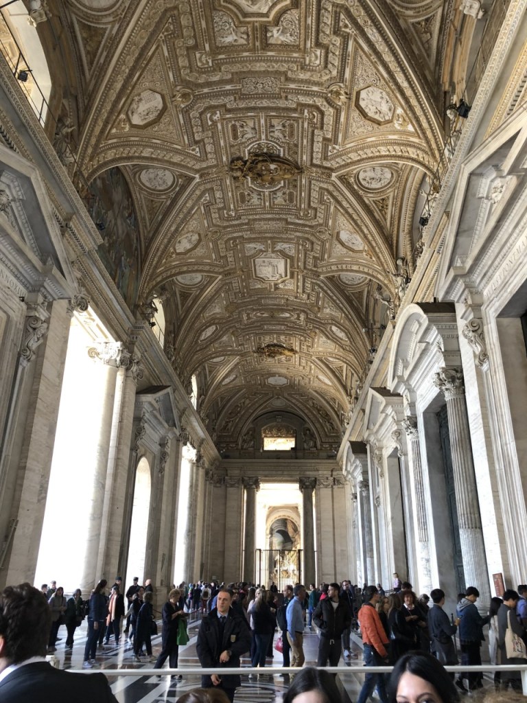 Inside, we walked through the Gallery of the Candelabra, Gallery of Tapestries, and the Map Gallery. The Gallery of the Candelabra gets its name from the candelabras that, together with marble pillars, separate this hall into six sections. Many classical sculptures, works of art, and relics are displayed throughout the gallery.