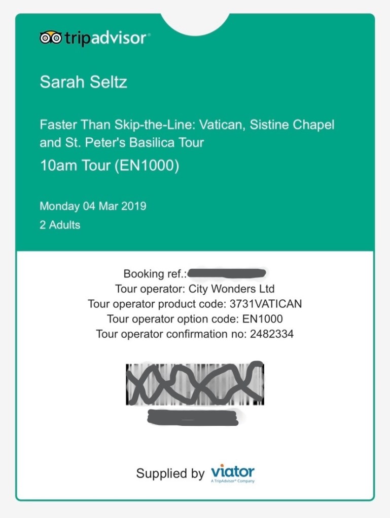 We purchased Faster Than Skip-the-Line tickets through TripAdvisor to see all three. We selected a 10:00am tour in English and were booked with City Wonders tour company. On a previous trip to Rome I decided Vatican City is one of those places it is worth purchasing a tour because you choose a time to enter and have a guide to point out highlights, offer insight, give historical context, and provide fun facts. Also, tours go directly into St. Peter’s Basilica and do not go through a second set of security lines.